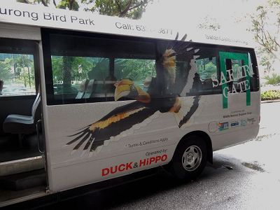 朝のうちスコール、ホテルをでる頃には薄曇りの日になった。ジュロンバードパーク(Jurong Bird Park)に、シャトルバスSAFARI Line2 9:30発でAYE(Tollroad)を20分ほど走行して公園に着いた。