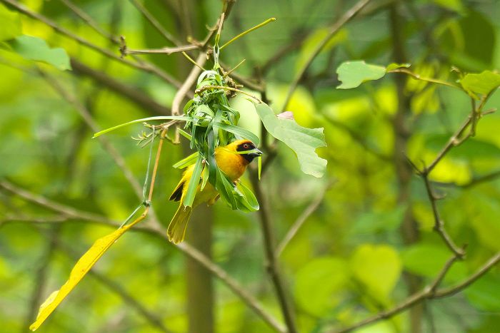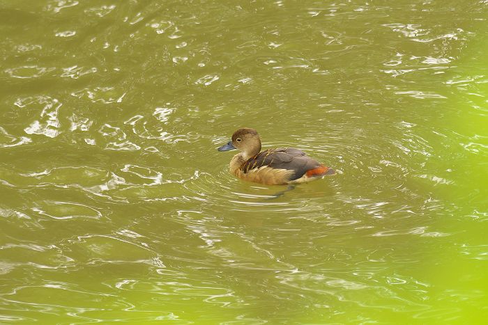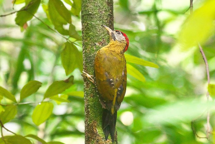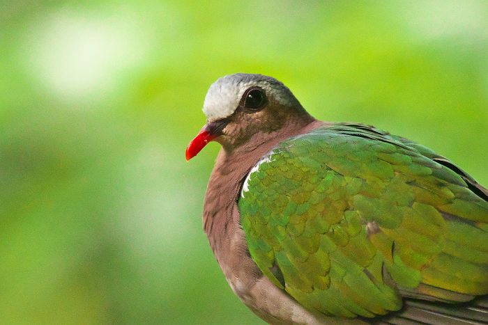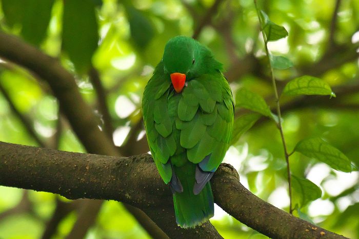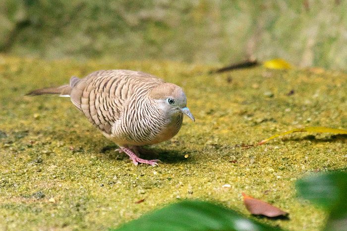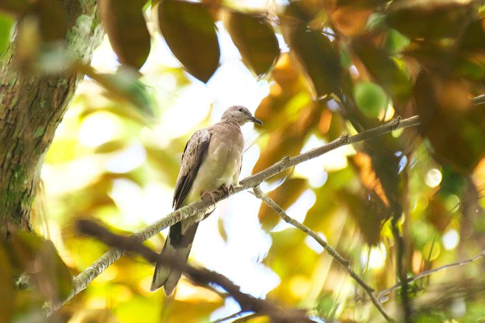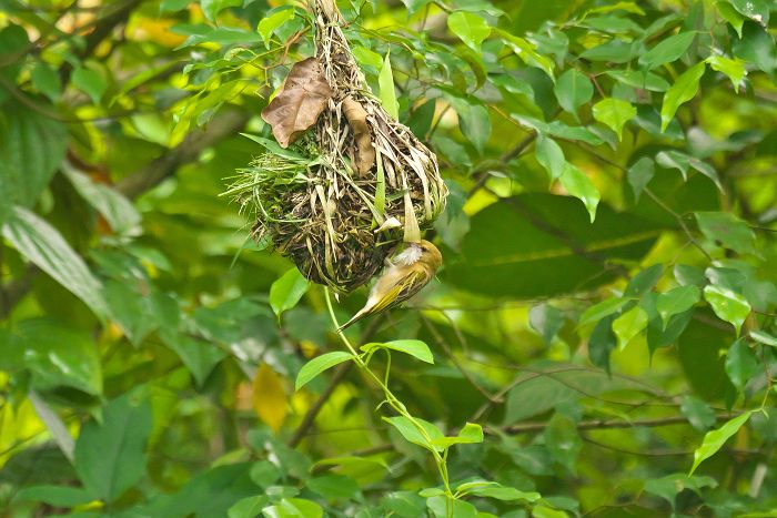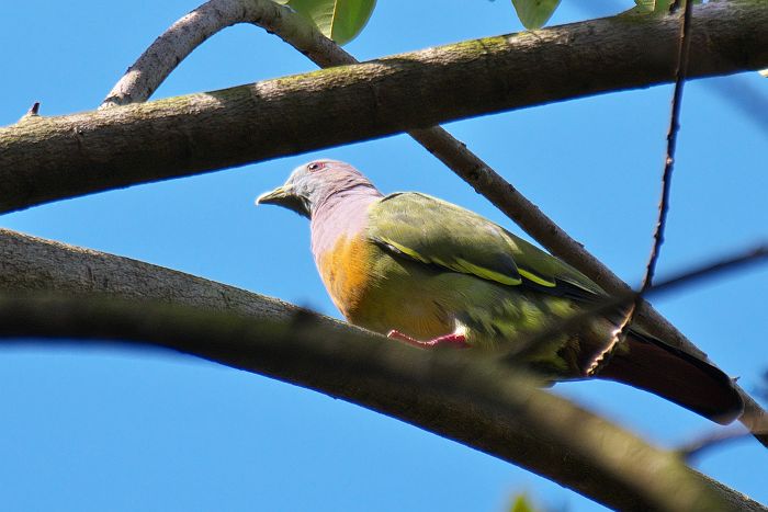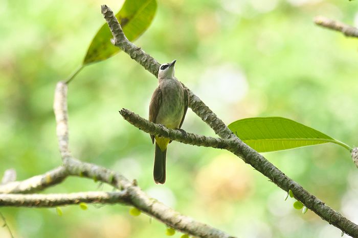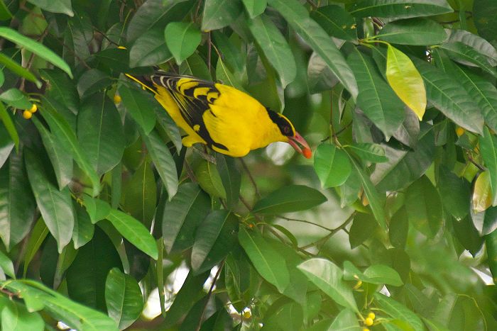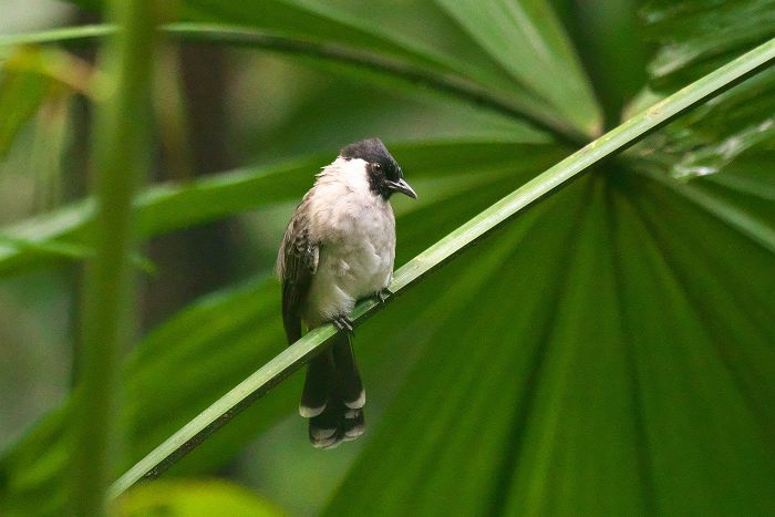 | 園内はカメラのレンズが曇るほどの湿気があり、その拭き取り中になんと普通にコウライウグイスが飛び交い木の実を食べていた。樹木の天辺にハイイロペリカン、園路沿いにシキチョウ、コアオバト、池にリュウキュウガモが見れた。 |