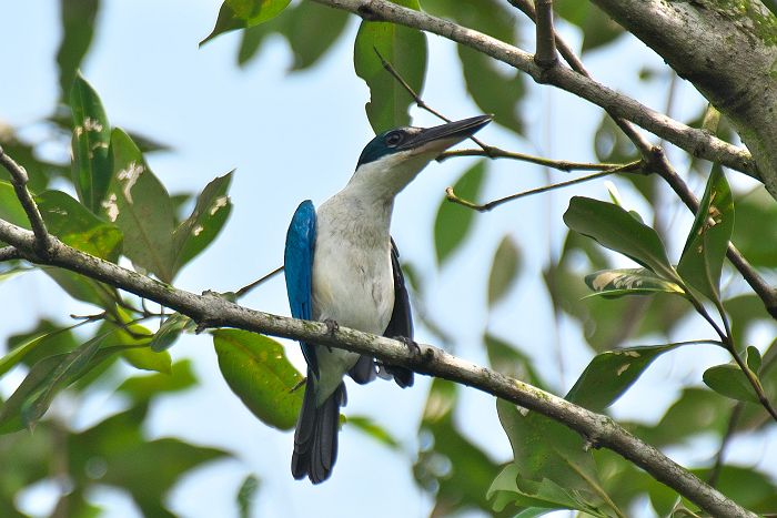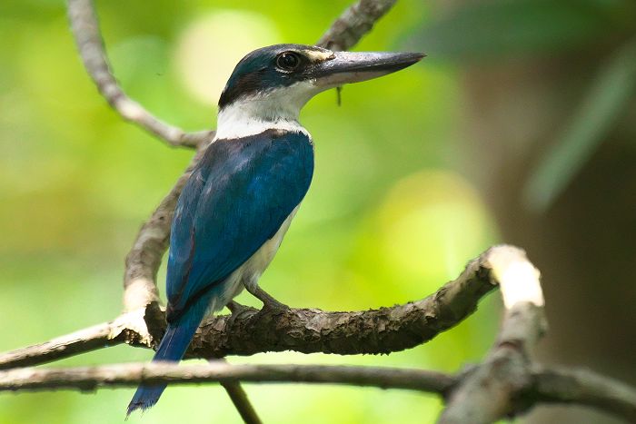 | エントランス ゲートから木道を進むと満潮で海水がかなり干潟に入っていたが、歩き始めてすぐ ナンヨウショウビンの鳴き声がして付近を探すと枝にとまっていて、いきなりの初見、幸先の良い鳥見スタートとなった。 |