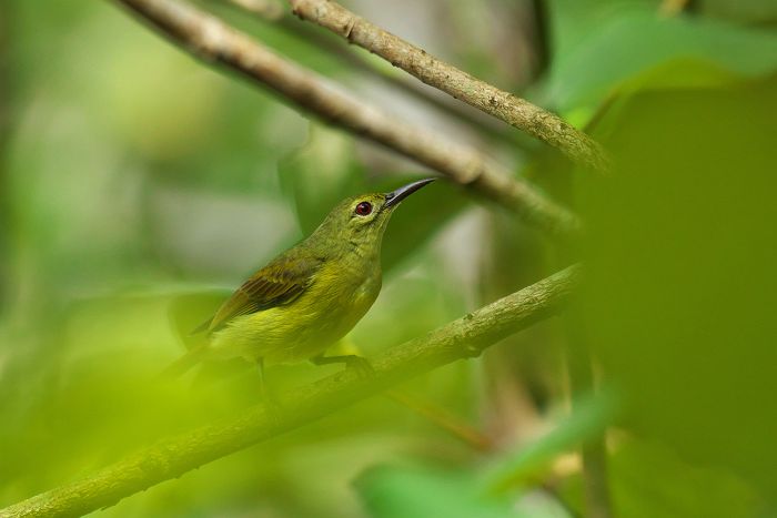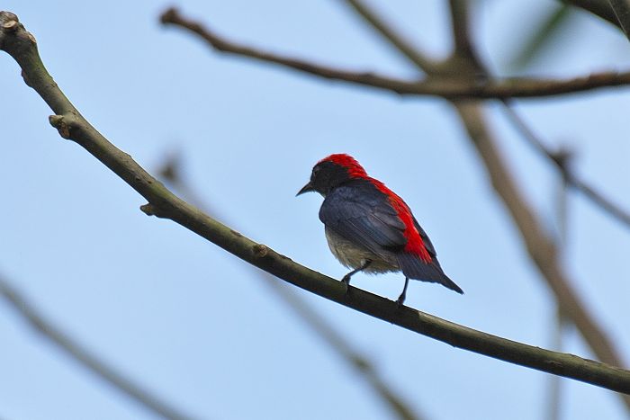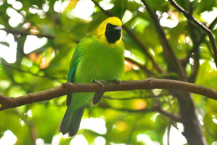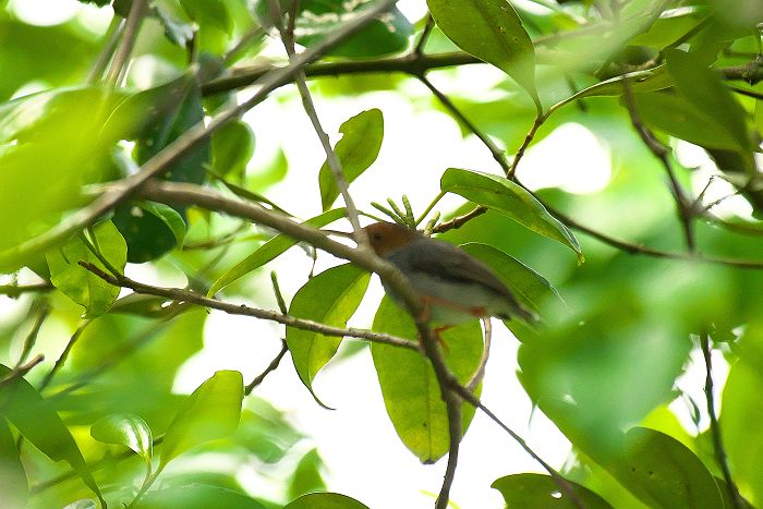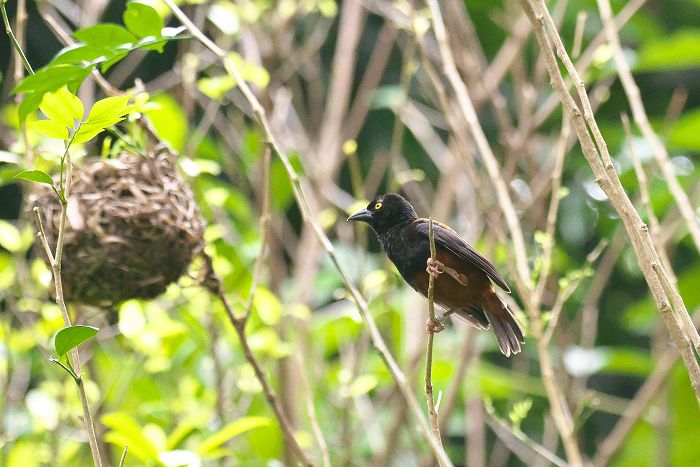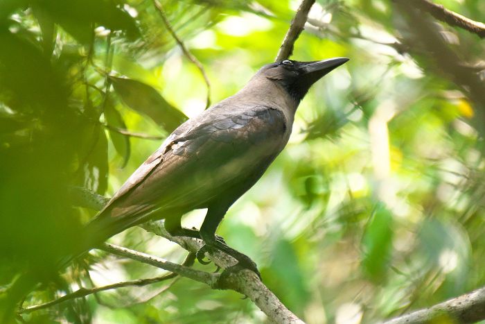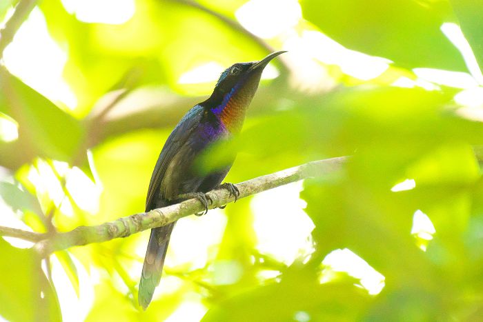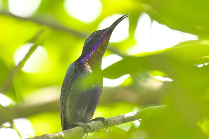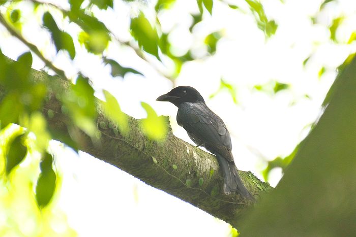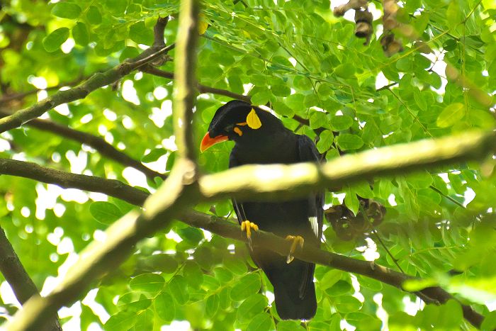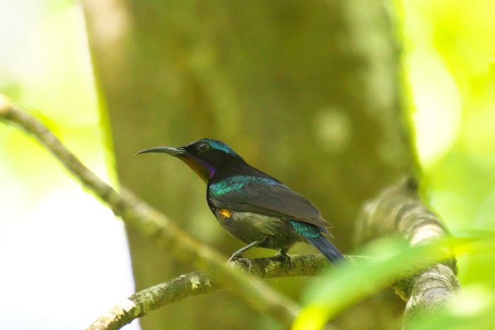 | イエガラス数羽も木々の中を飛び交っていた。他に、ノドアカタイヨウチョウ♂、チャノドコバシタイヨウチョウ♀などがでた。 |