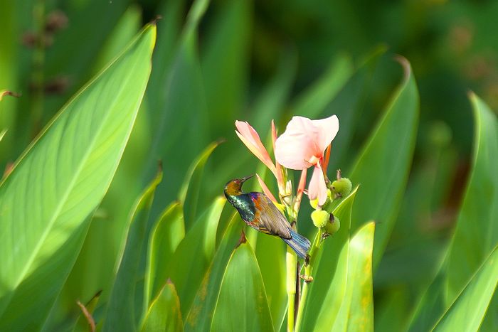 まで、地上出口すぐのところがシンガポール植物園(Singapore Botanic Gardens)入口、市街地にある南北に約2kmの公園で、日曜日ということもあり多くの人が散歩などで訪れていた。ここは園路が数多くあって、南国の花に囲まれ木陰のベンチで休憩しながら鳥見散歩した。